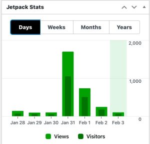 - Big jump in website visits. Graphics from Feb 3